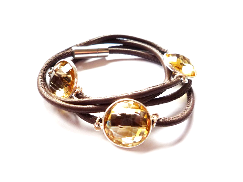Material: 925 Silber Länge: je Strang 18 cm Lederbreite: 2,5mm Farbe Leder: taupe (andere Farben möglich) Edelstein: Citrin